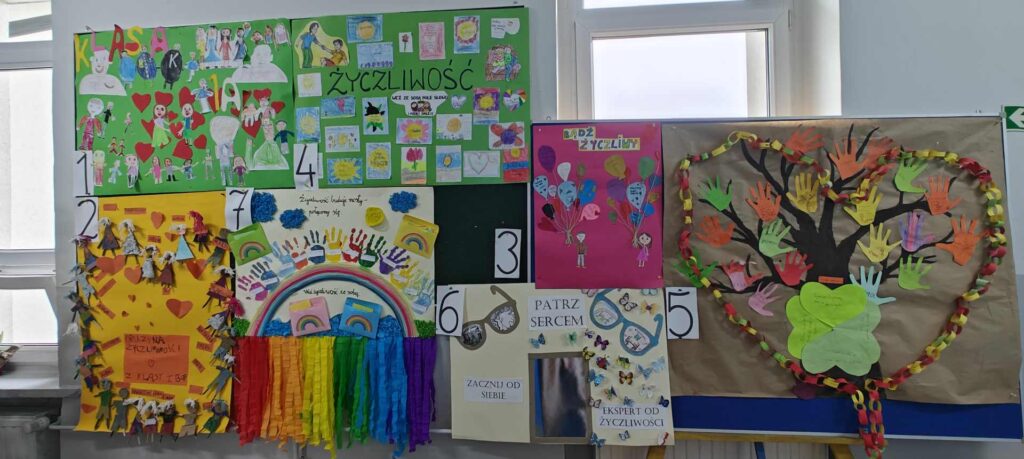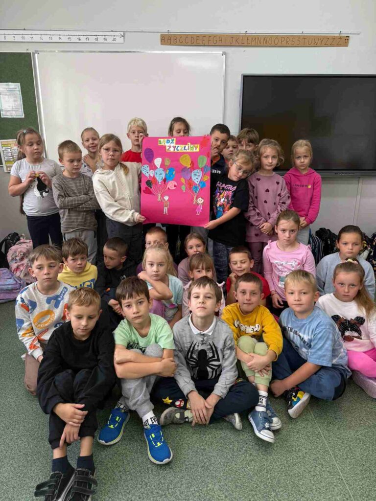 Nie zabrakło również kreatywnego konkursu „Plakat o Życzliwości” 🎨 – wszystkie klasy przygotowały wyjątkowe prace. Zwycięska klasa została nagrodzona warsztatami robienia pizzy, a pozostałe otrzymały gry planszowe do wspólnej zabawy.
