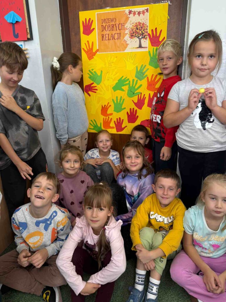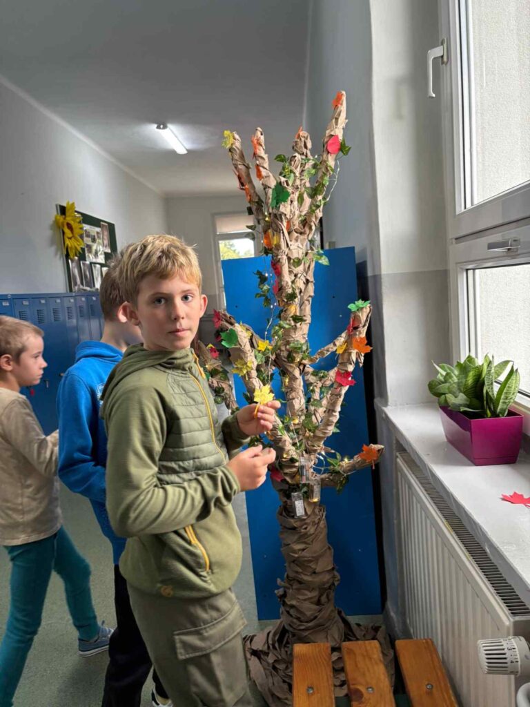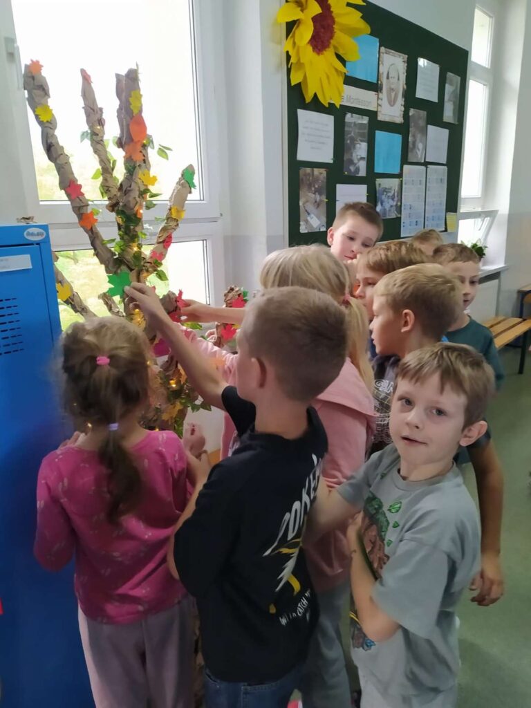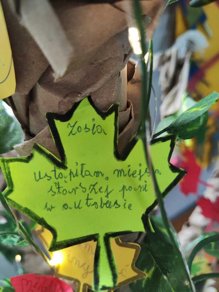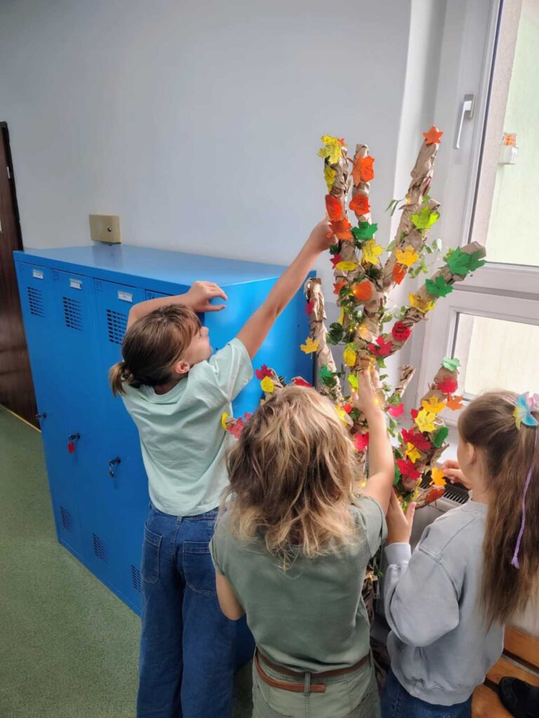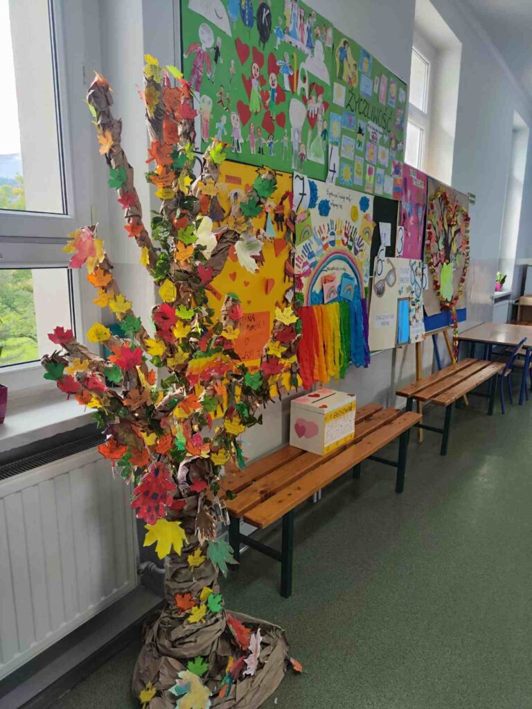 Na II piętrze powstała też nasza całoszkolna inicjatywa – 🌳 Jesienne Drzewo Dobrych Relacji, które każdego dnia rozkwitało nowymi liśćmi z dobrymi słowami i uczynkami.