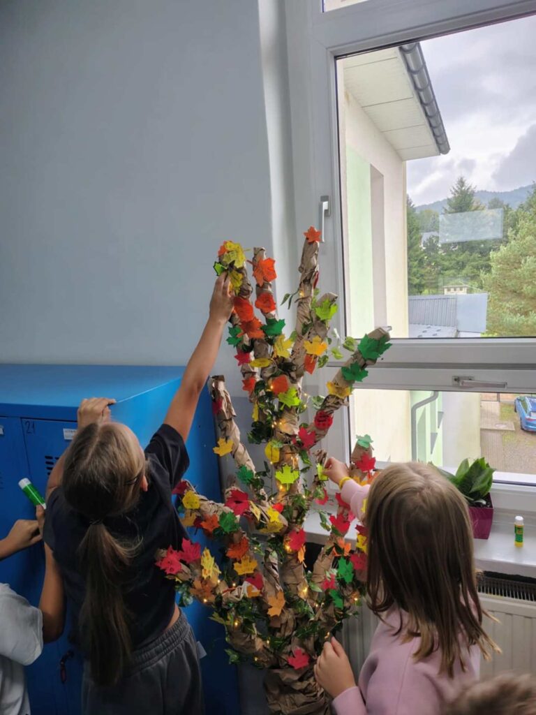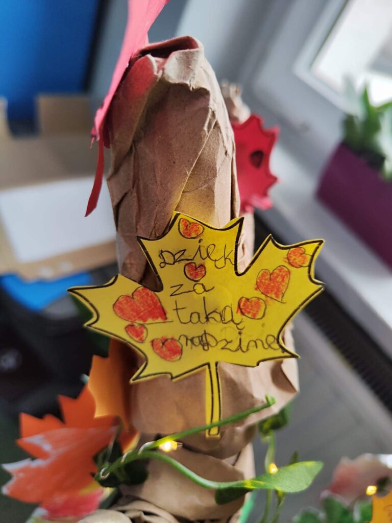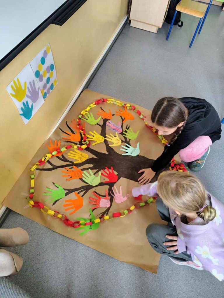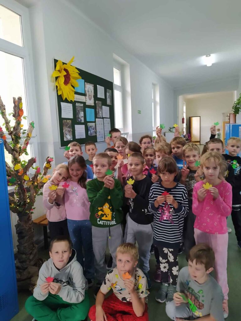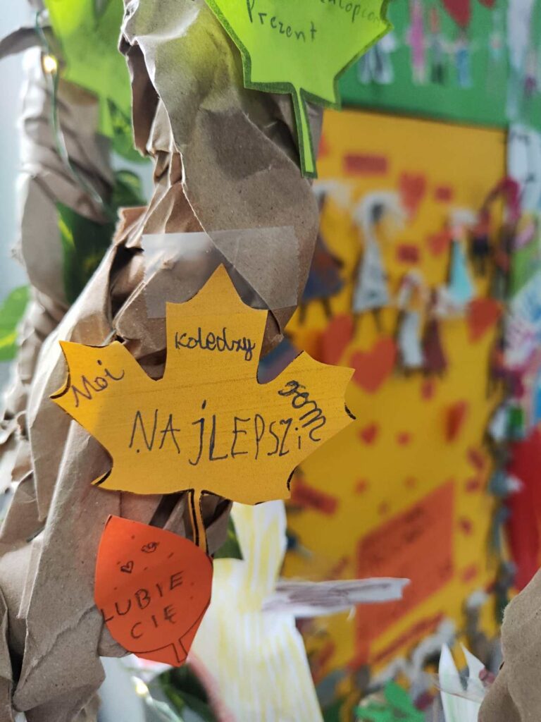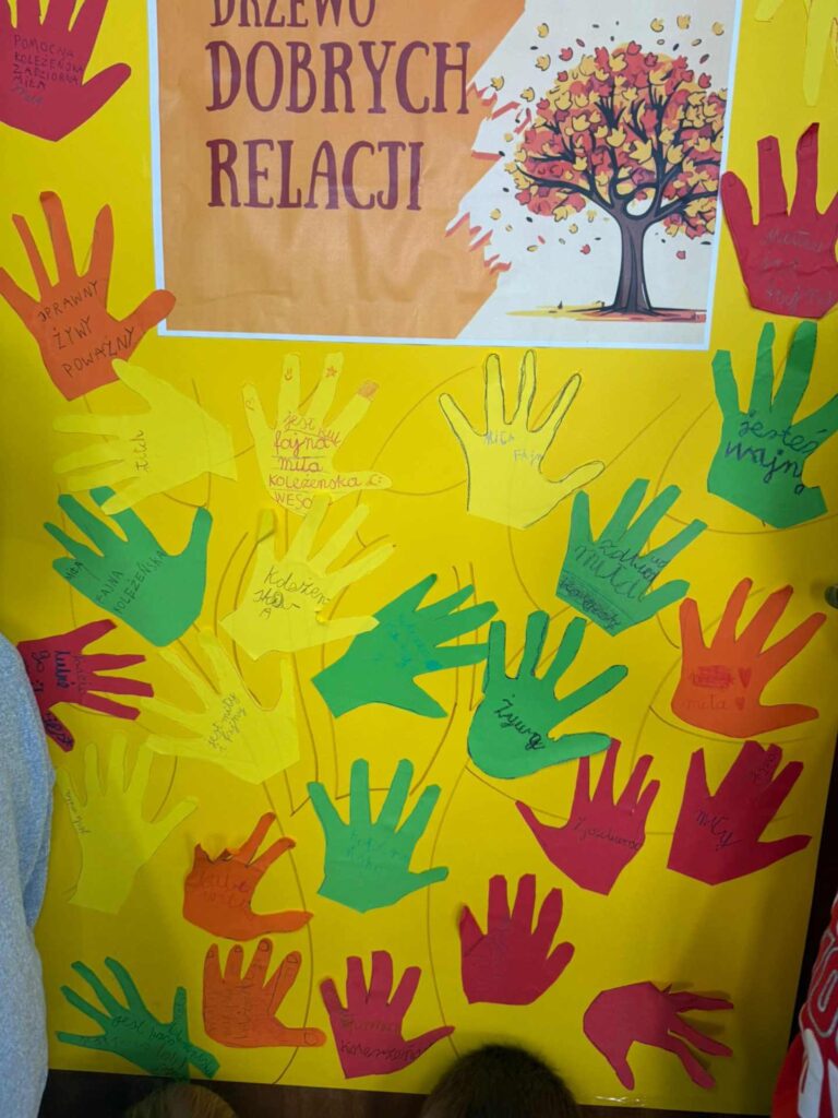 Na II piętrze powstała też nasza całoszkolna inicjatywa – 🌳 Jesienne Drzewo Dobrych Relacji, które każdego dnia rozkwitało nowymi liśćmi z dobrymi słowami i uczynkami.